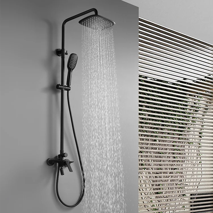 Rain Thermostatic Shower System Black Gold With Hand Shower Spout Smart Living And Technology